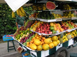 Lavare e denocciolare la frutta, tagliarla tutta a piccole fette, raccogliere in una ciotola, condire con lo zucchero e il succo di limone.