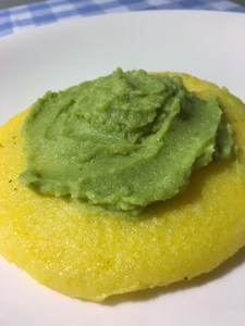 Io verso la polenta ( che tengo morbida) su piatti individuali, aspetto che si rassodi un po’, poi sistemo al centro la crema di broccolo. A piacere, un giro d’olio sopra.