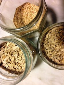 Quindi il broccolo si frulla con un cucchiaio o due d’olio d’oliva, sale, pepe o paprica a piacere (se l’avete lessato o stufato), e uno spicchio di aglione a fettine.